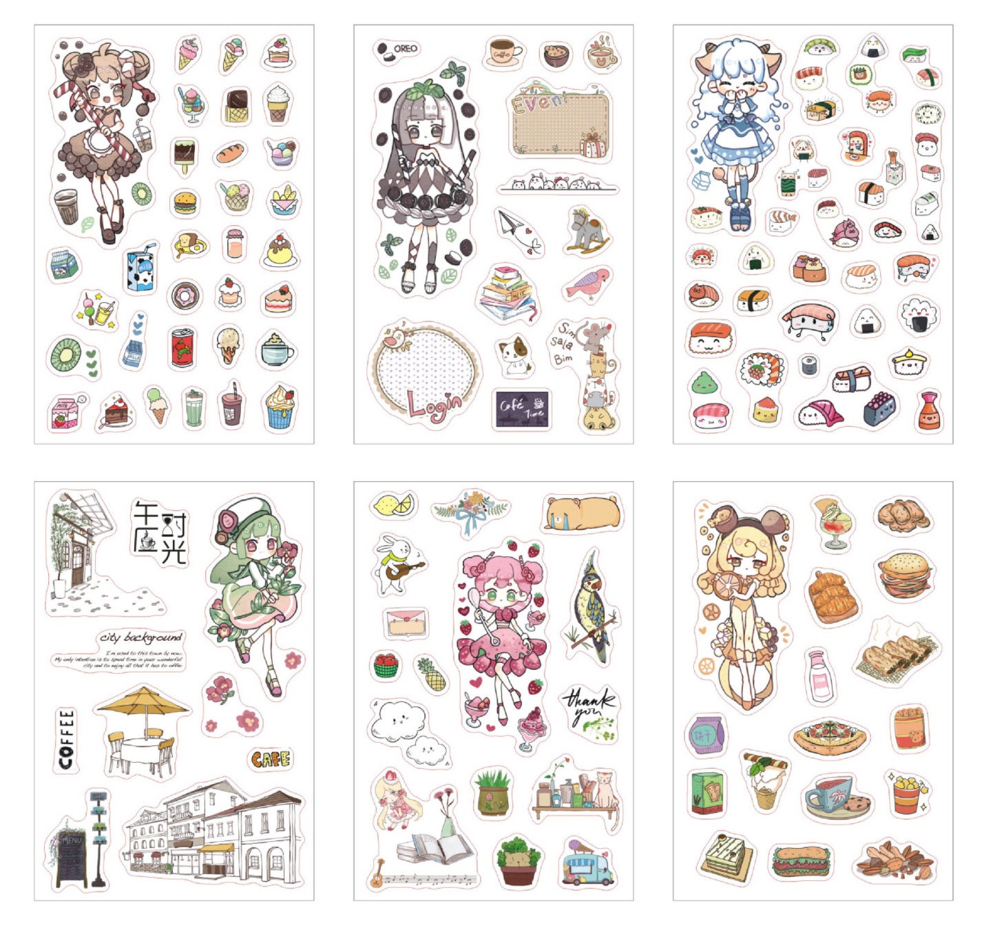 Enjoy the large variety of food and snacks stickers, as well as cute girl animated characters!