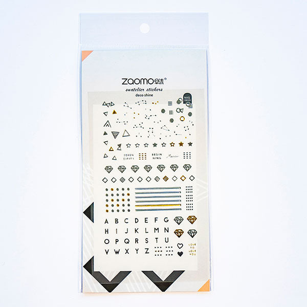 Metallic geometric stickers! Featuring gold and black accents with diamonds, stars, letters, and stylish geometric designs, these stickers are perfect for planners, scrapbooking, bullet journaling, gift wrapping, and artistic DIY projects. Their minimalist yet luxurious look makes them a versatile and eye-catching addition to any craft.