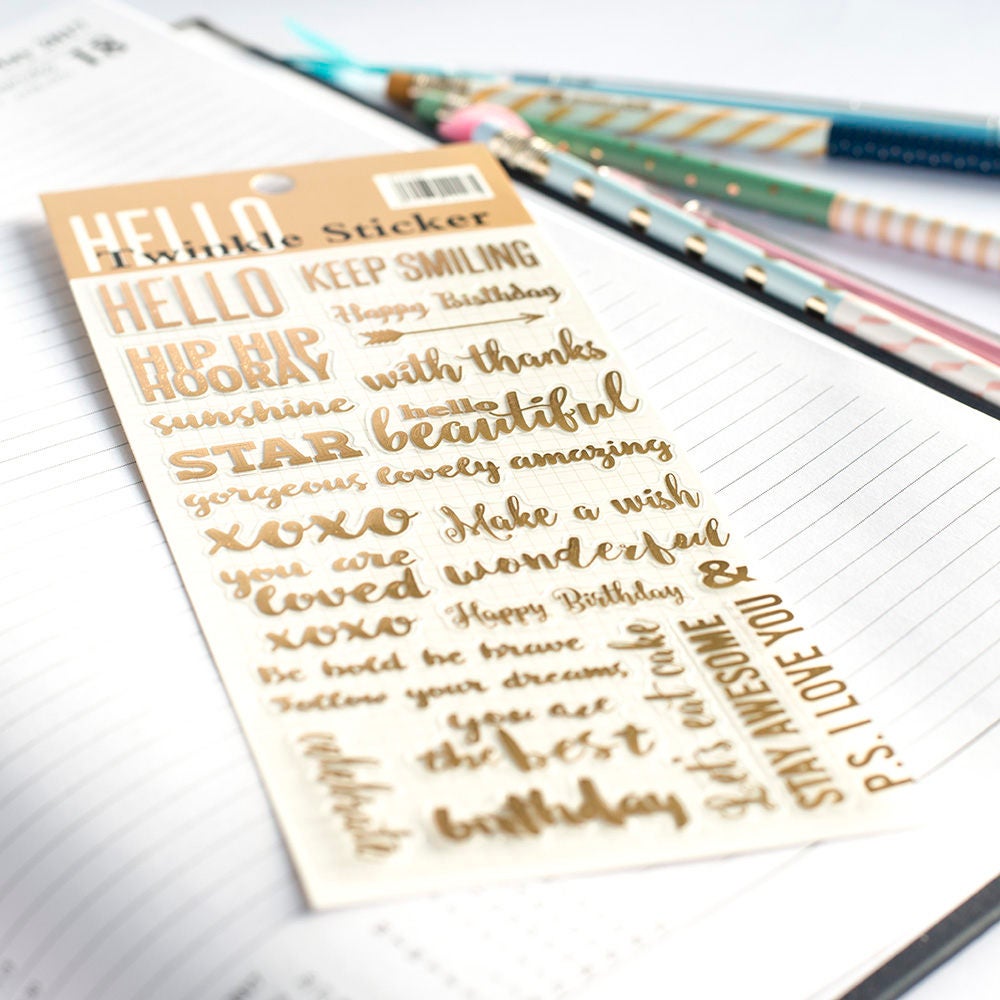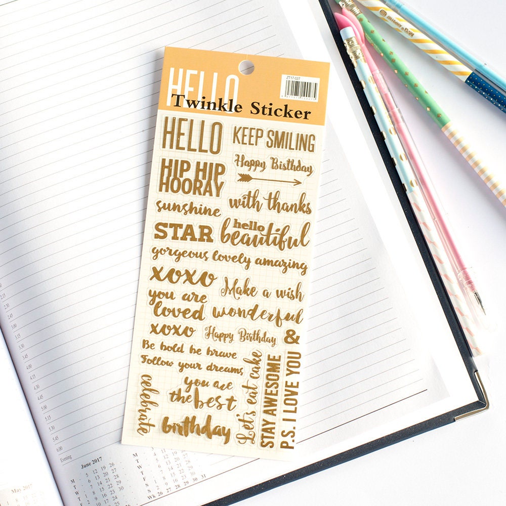 Be positive gold foil stickers with Gold foil positive encouragements. Good choice for diaries and scrapbooking to add some positivity to our daily lives.