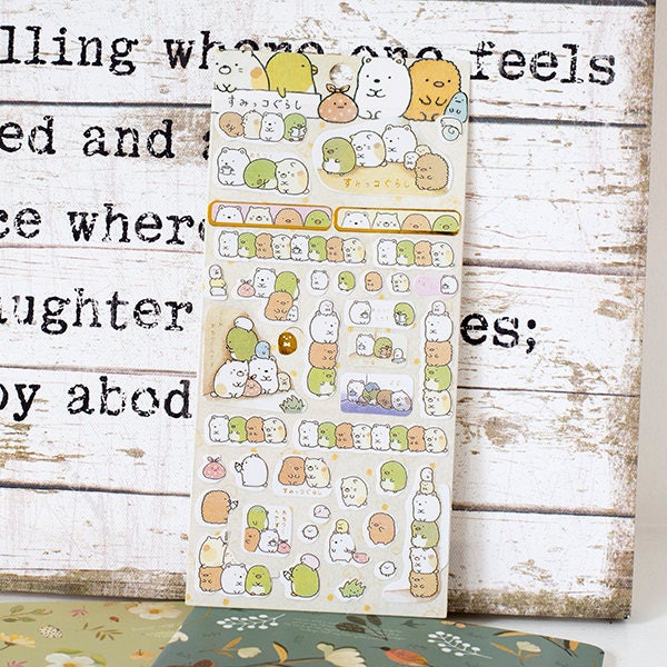 1 sheet assorted cartoon animal stickers. With these cute stickers you can decorate books, letters, scrapbooking or to embellish your journal/diary. This sheet features the Sumikko Gurashi characters. Sumikko Gurashi means 'Corner Living' in Japanese.