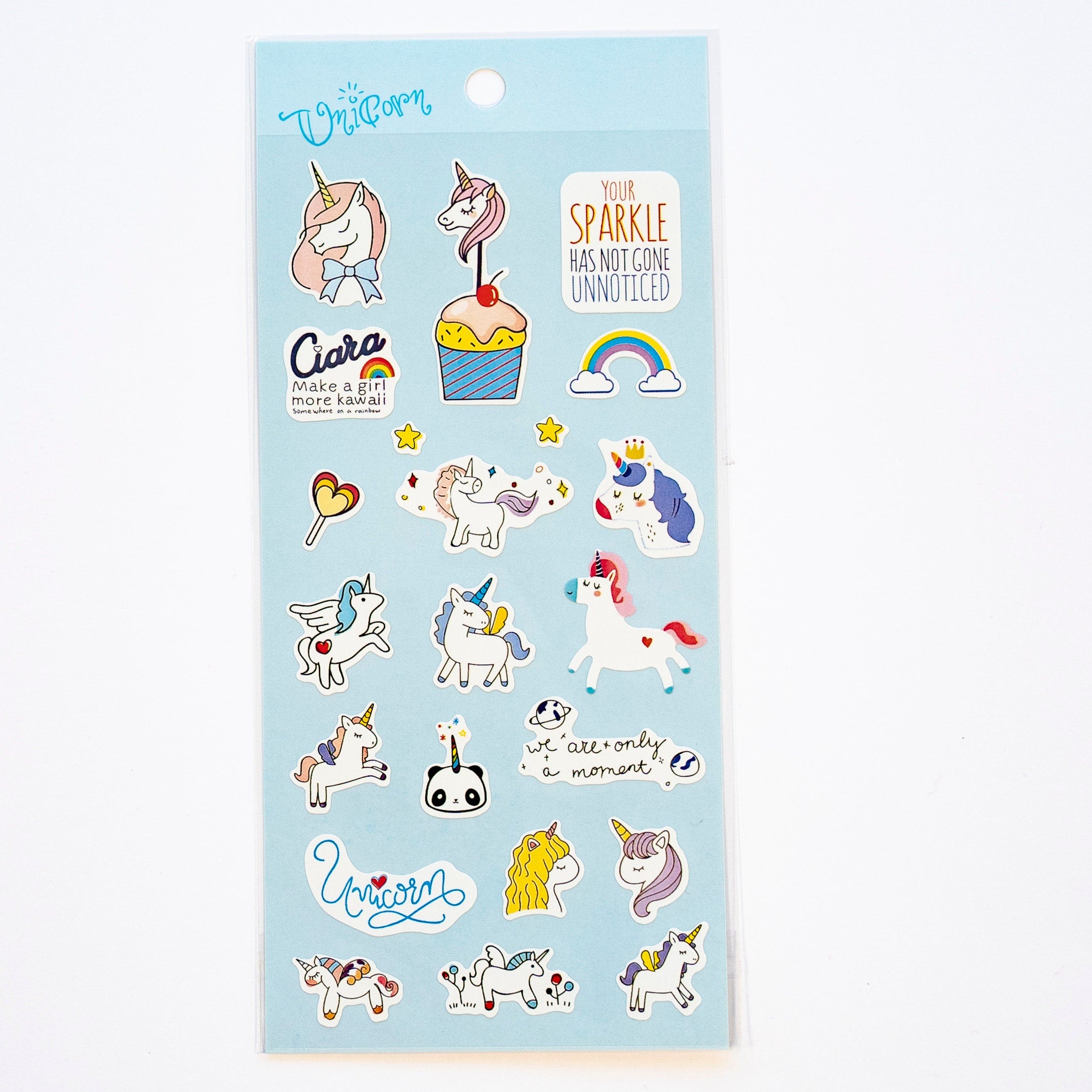 Adorable unicorn sticker sheet! Featuring playful unicorns, dreamy rainbows, and positive quotes, these stickers are perfect for decorating journals, scrapbooks, planners, and more. Whether you're a unicorn lover, stationery enthusiast, or simply want to brighten up your day, these stickers bring joy and enchantment to any surface