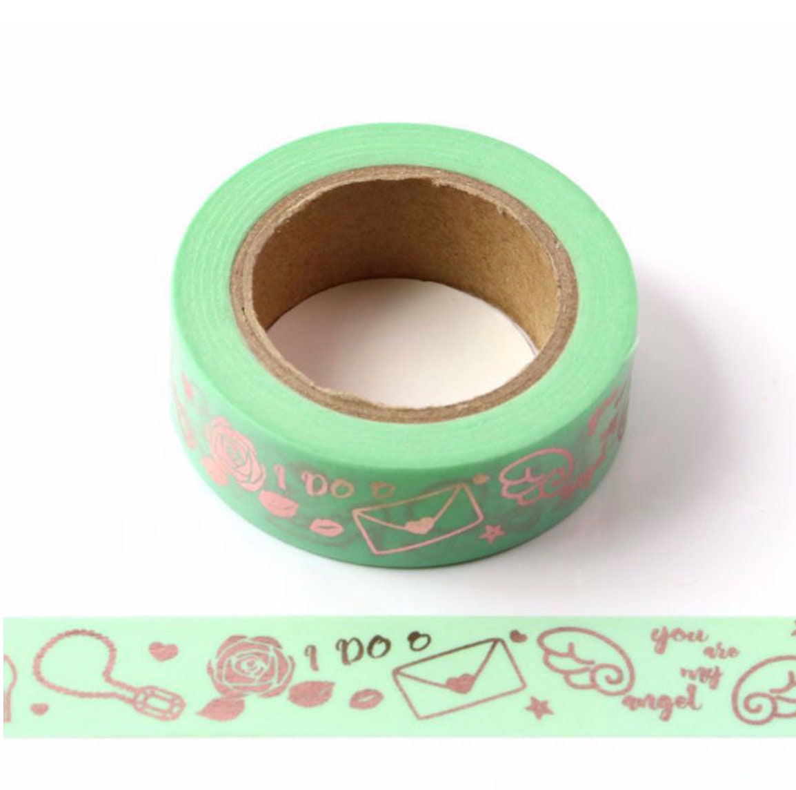 Green Washi Tape with Rose Gold Foil Decoration! 🌿✨ Featuring a bright green base with shimmering rose gold accents, this tape is perfect for decorating journals, planners, scrapbooks, and wrapping gifts. Whether you're adding a stylish touch to your stationery or crafting unique designs, this washi tape brings elegance and charm to every project.