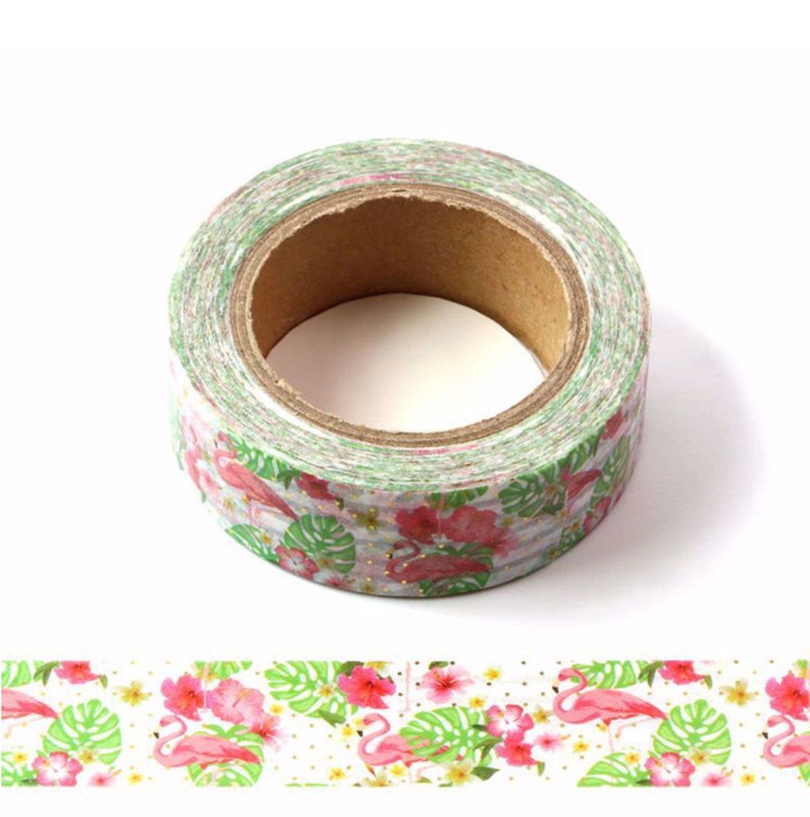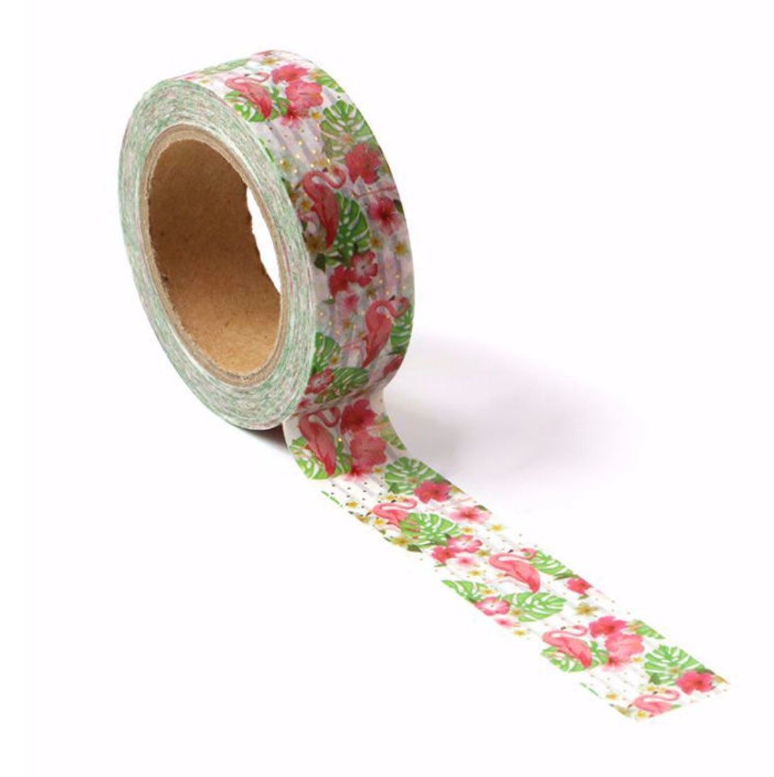Red Flamingo Washi Tape! 🌴🦩 Featuring a vibrant red background with graceful flamingo designs, this tape is beautifully accented with gold foil dots for a luxurious and eye-catching look. Perfect for planners, journals, scrapbooks, and gift wrapping, this washi tape is a must-have for flamingo lovers and DIY enthusiasts.