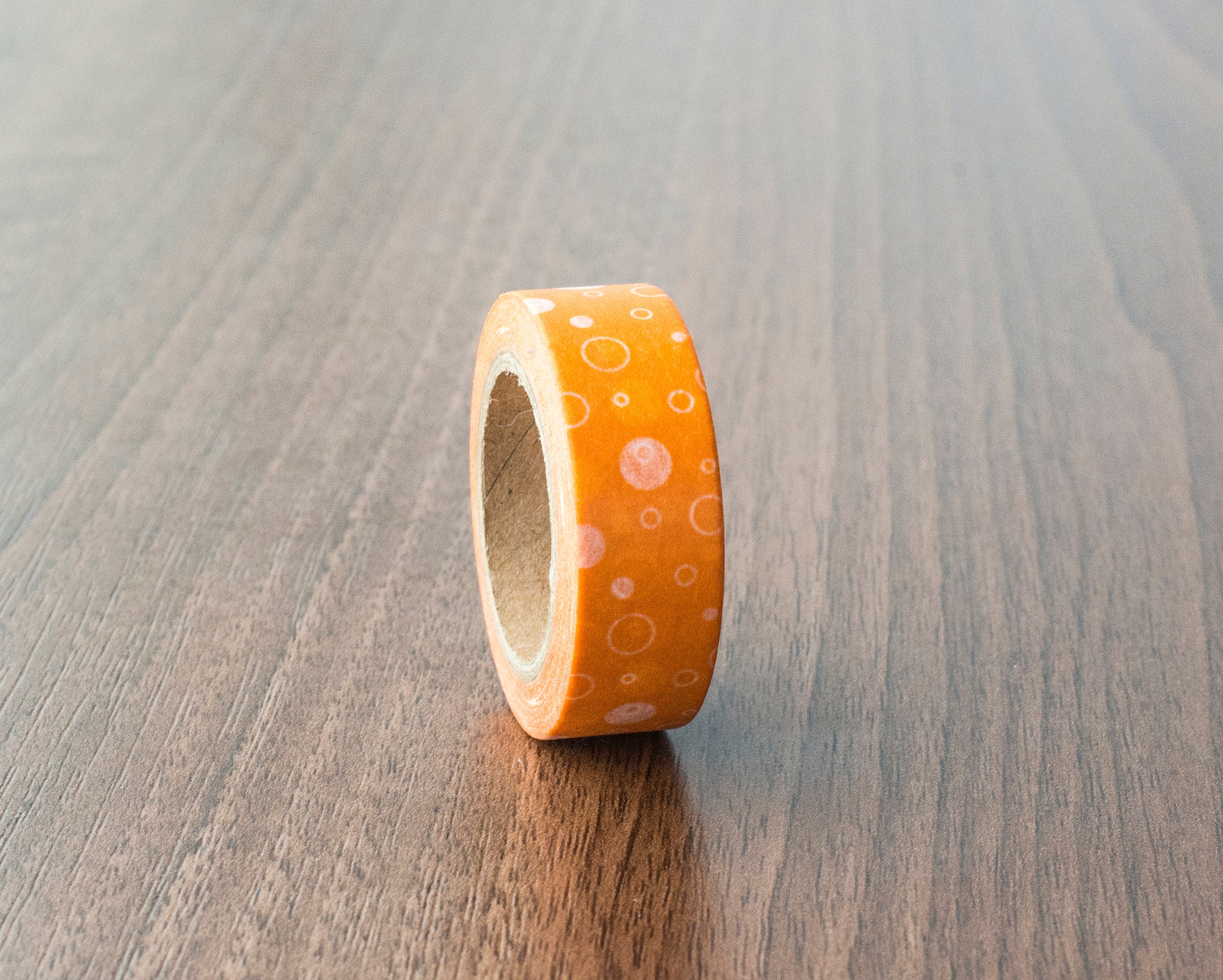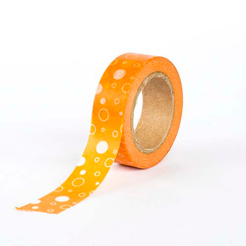 Orange washi tape featuring a playful white bubble pattern. Made from high-quality washi paper, this decorative tape is perfect for scrapbooking, journaling, gift wrapping, and DIY crafts.