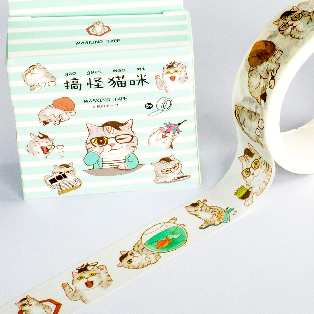 cat-themed washi tape! Featuring quirky and expressive cartoon cats in playful poses, this high-quality decorative tape is perfect for scrapbooking, journaling, gift wrapping, and DIY crafts. Whether you're a cat lover or a stationery enthusiast, this tape will bring joy to your creative work.
