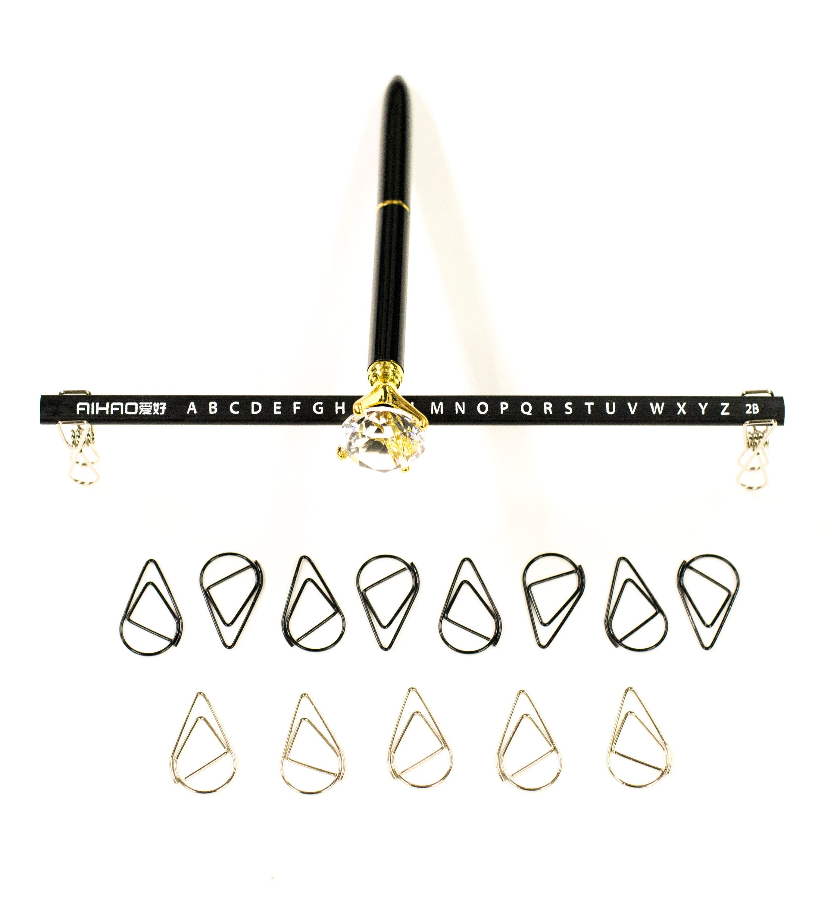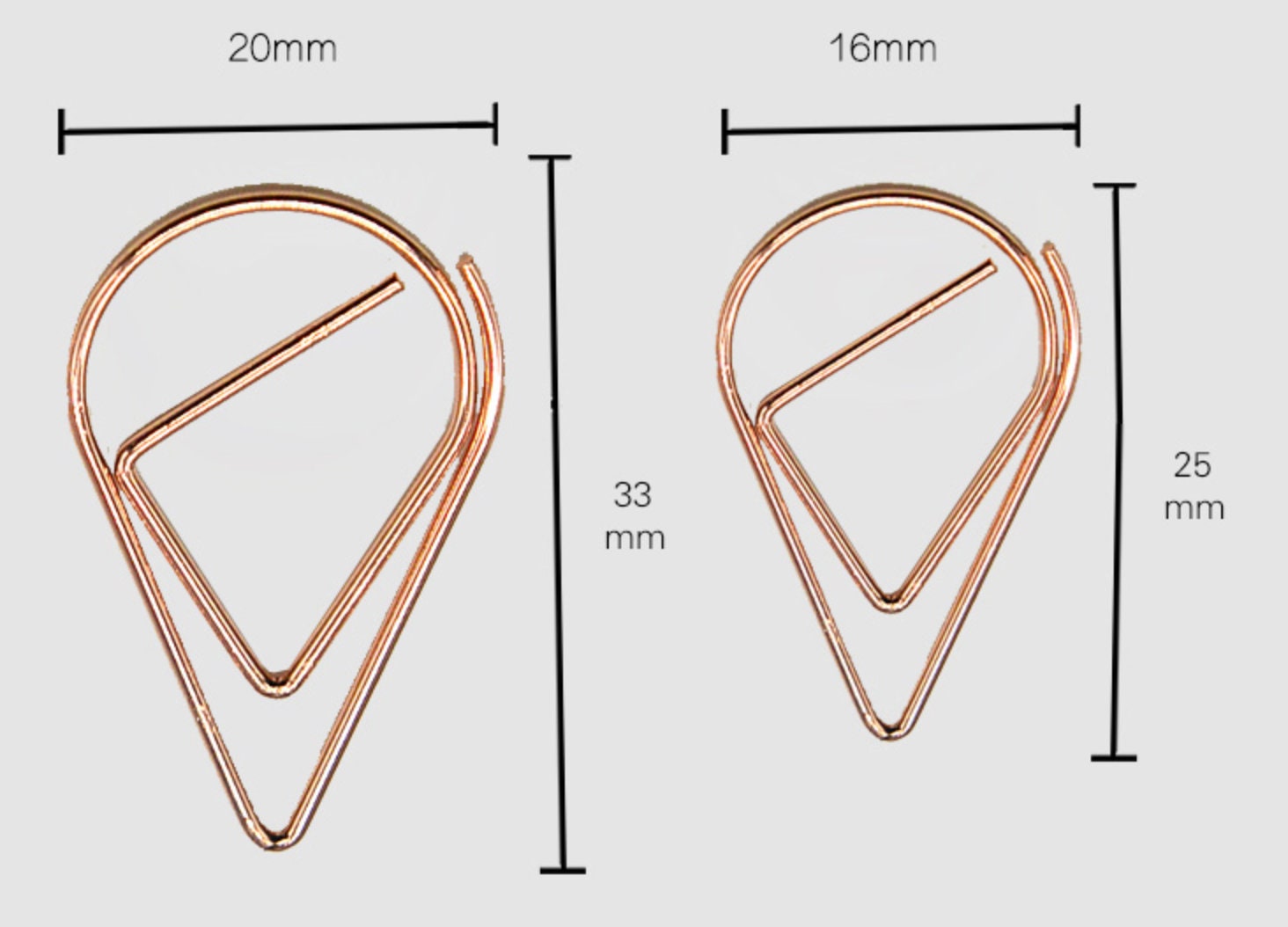Set of 10 teardrop shaped paperclips. These clips are the perfect way to secure papers, they also make ideal page markers so you won’t lose your place. With their beautiful geometric shape these clips are sure to grab attention wherever you choose to put them!