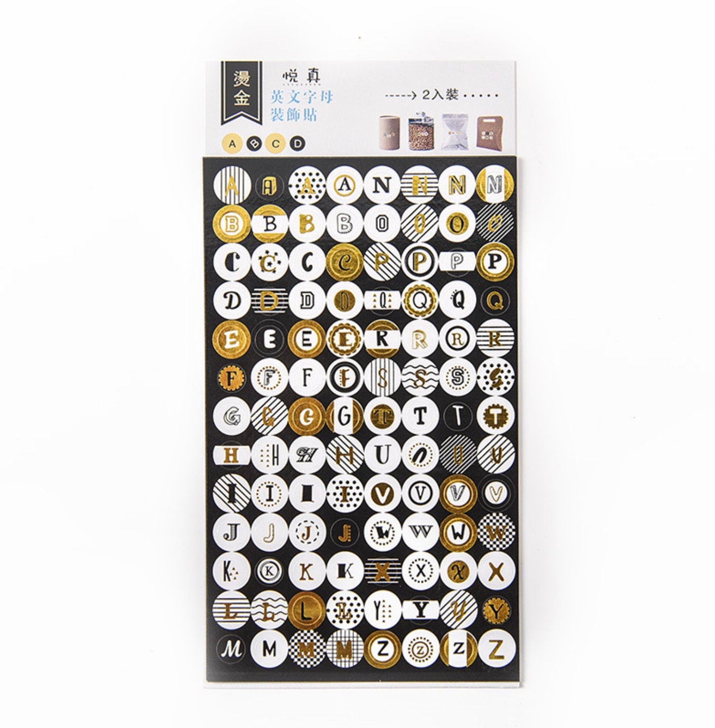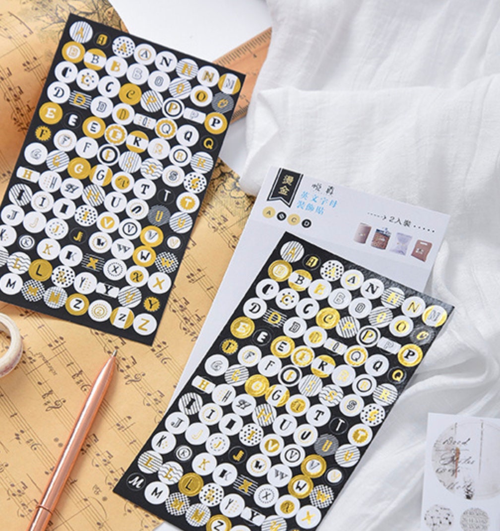 2 Sheets Alphabet Foil Stickers – Retro Gold Lettering