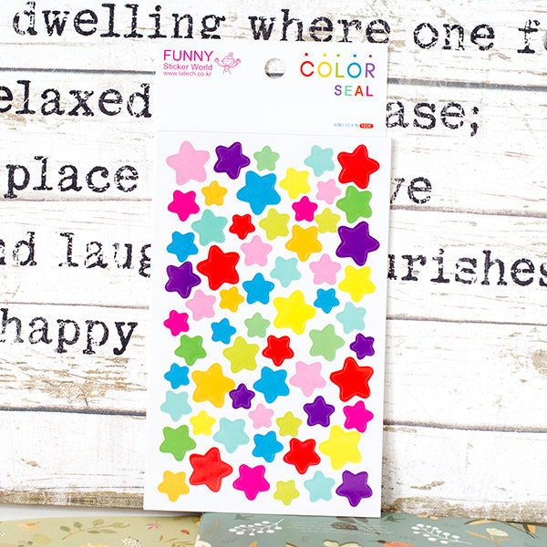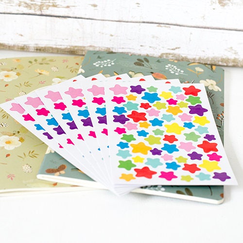 Beautiful Star sticker collection form Funny. This set of stickers set has 6 sheets of star stickers on every page in rainbow colors