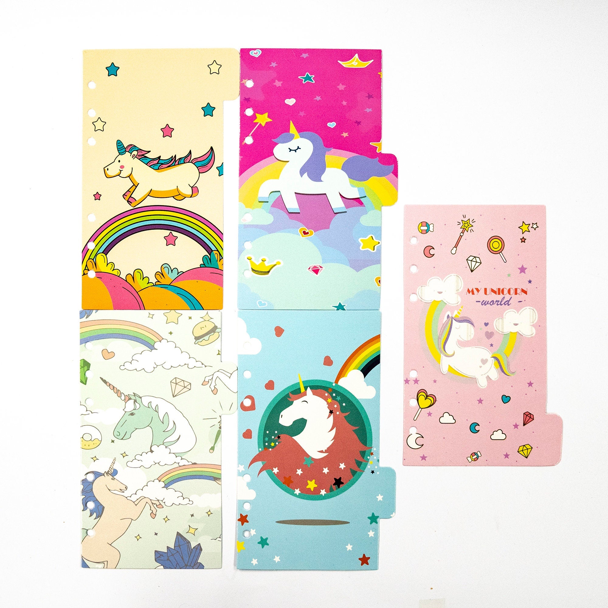 A6 Unicorn 5-Part Diary Dividers Designed to add charm and functionality to your diary, these dividers come in five unique designs, each featuring adorable unicorn-themed illustrations. Whether you're categorizing notes, tracking goals, or planning your schedule, these dividers make every page feel extra special.