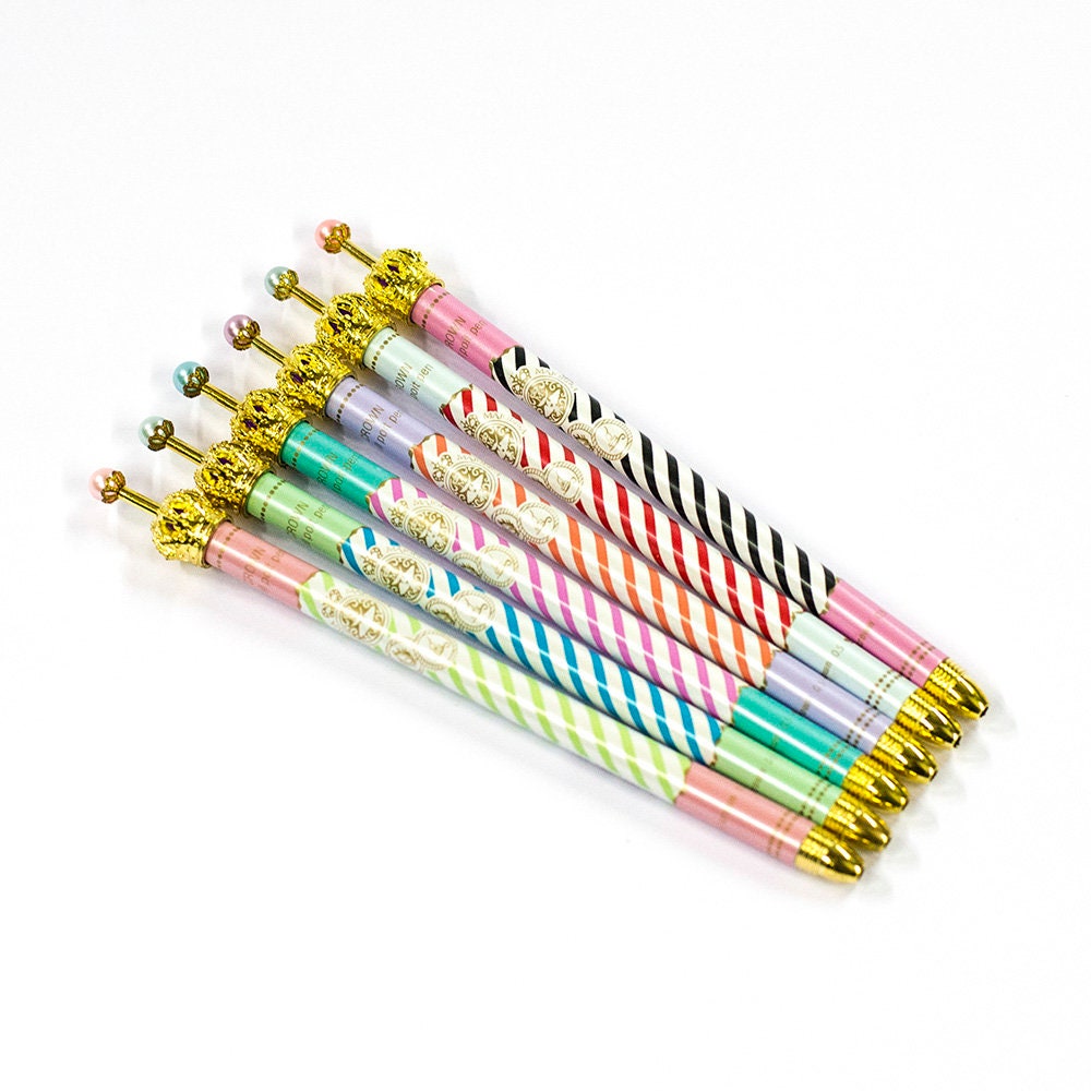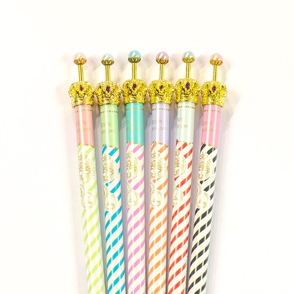 Striped Collection Crown Pens! 👑✨ Featuring bright striped patterns and a golden crown on top, these pens are both chic and functional. They make a perfect gift for a friend, a stationery lover, or as a luxurious addition to your own collection.
