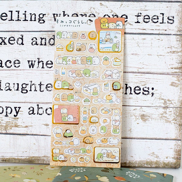1 sheet assorted cartoon animal stickers. With these cute stickers you can decorate books, letters, scrapbooking or to embellish your journal/diary. This sheet features the Sumikko Gurashi characters. Sumikko Gurashi means 'Corner Living' in Japanese.